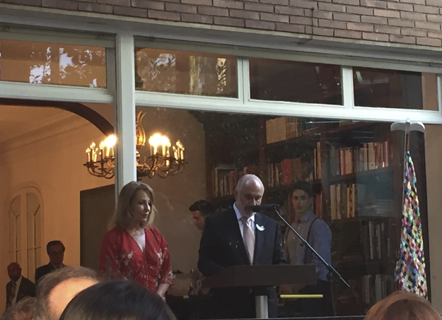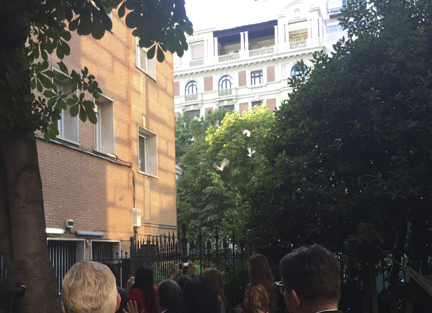 | El pasado 13 de julio, y con motivo de la Fiesta Nacional de la República de Colombia, la Fundación Euroamérica asistió a la recepción que el Embajador de la República, D. Alberto Furmanski, y su Sra. ofrecieron en su residencia. El Embajador centró su discurso de bienvenida en las excelentes relaciones entre Colombia y España y en la reciente firma de la Paz, agradeciendo a los principales actores del gobierno colombiano que la han hecho posible y, en especial al Presidente de la República, D. Juan Manuel Santos. Tras sus palabras, y a modo de homenaje, liberaron unas palomas. | |