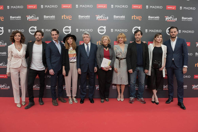 El Presidente de EGEDA junto con la Alcaldesa Manuela Carmena y los actores