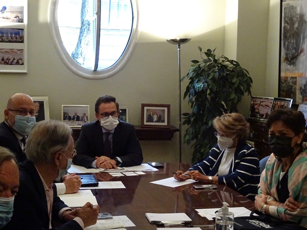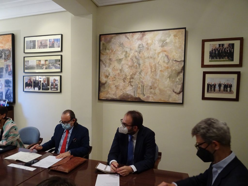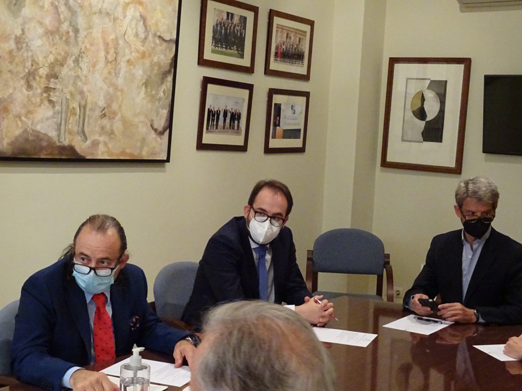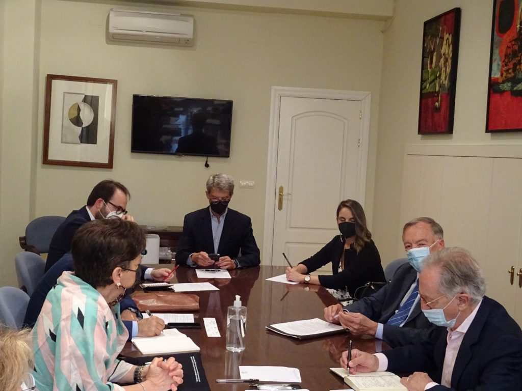 La Fundación Euroamérica ha recibido al Presidente Ejecutivo de la Cámara de Comercio de Bogotá, Nicolás Uribe Rueda, junto a Sandra Neira de su Junta Directiva y Guillermo Echeverri, Presidente de la Junta Directiva de Ecopetrol. En la reunión, muy reducida para cumplir con las medidas sanitarias necesarias, participaron en representación de empresas de nuestro patronato Víctor Baz de Repsol y Juan Ramón Hernández de Ineco, junto a los vicepresidentes y la directora general.