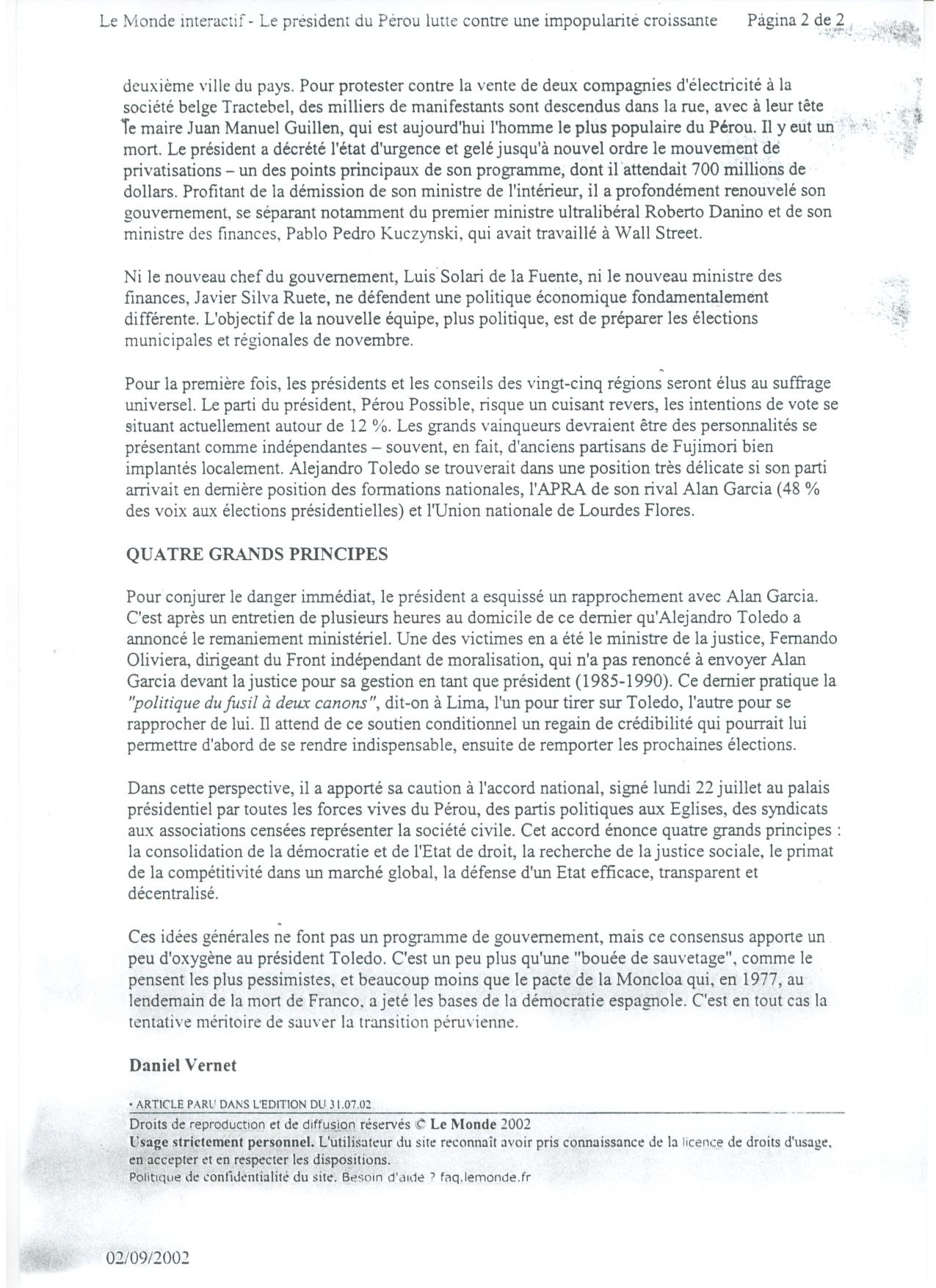 Les président du Pérou lutte contre une impopularité croissante [1] - [2]