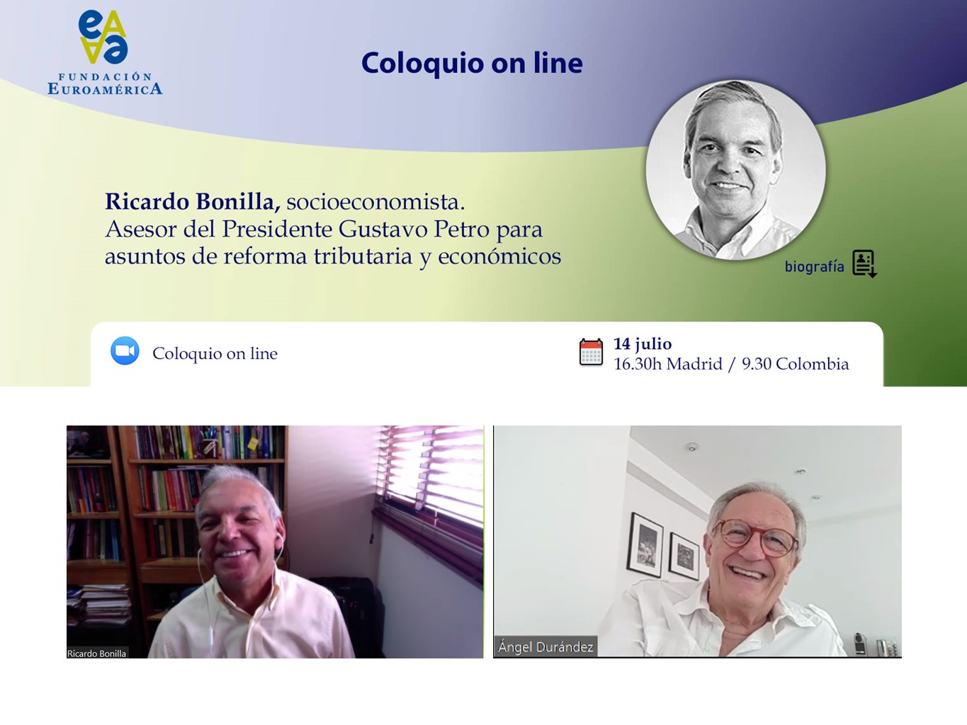 Fue un coloquio muy cercano en el que Ricardo Bonilla explicó las propuestas económicas que centraron la campaña del presidente electo, Gustavo Petro, centrándose en la transición energética y el tema fiscal.