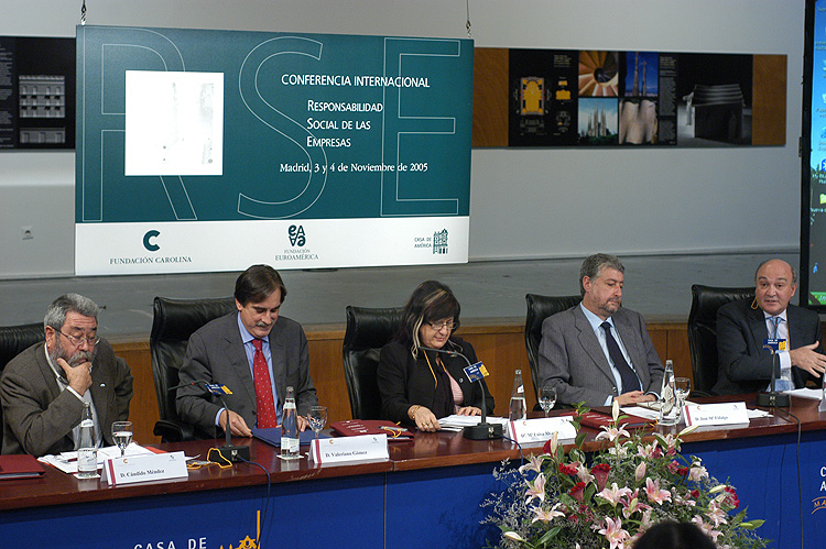 | Cándido Méndez, Secretario General, UGT Valeriano Gómez, Secretario General de Empleo, Ministerio de Trabajo y Asuntos Sociales Mª Luisa Álvarez Durante, Directora de RSE, Fundación Carolina José Mª Fidalgo, Secretario General de CCOO José Mª Lacasa, Director de Relaciones Internacionales, CEOE |