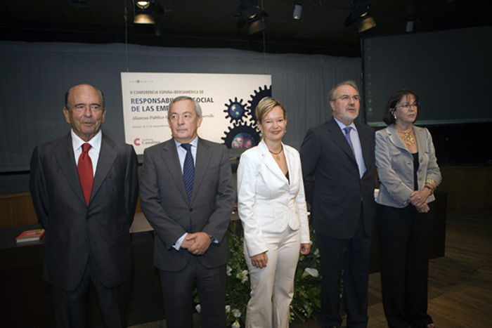 | Emilio Botín, Presidente del Banco de Santander; Carlos Solchaga, Presidente de la Fundación Euroamérica; Leire Pajín, Secretaria de Estado para la Cooperación Internacional; Pedro Solbes, Vicepresidente Segundo y Ministro de Economía y Hacienda, y Rosa Conde, Directora de la Fundación Carolina. |