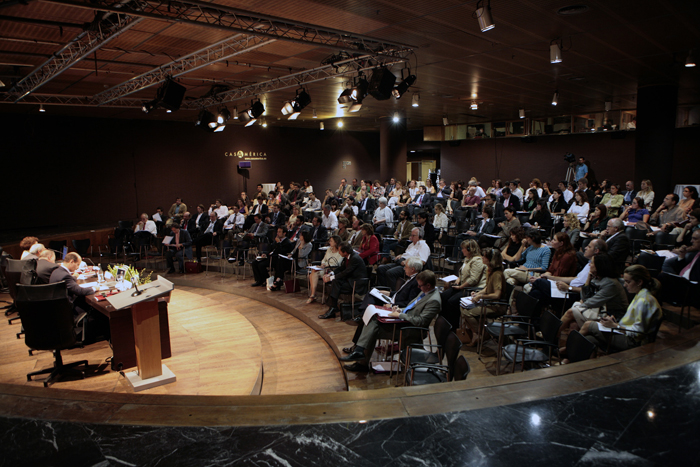 Asistentes a la II Conferencia España-Iberoamérica de Responsabilidad Social de las Empresas, en el Anfiteatro de Casa América.