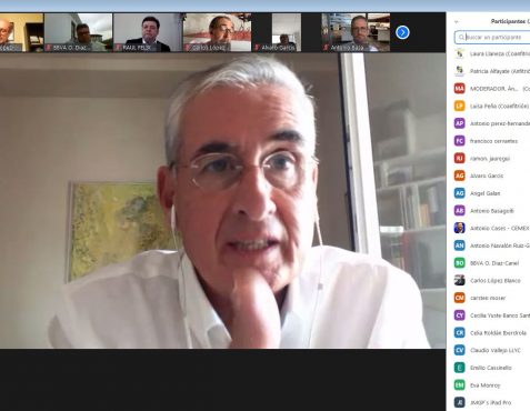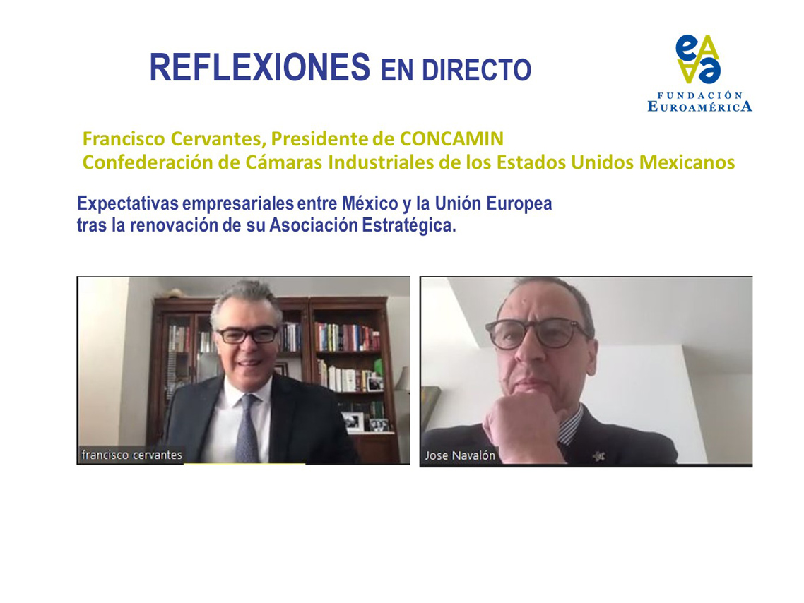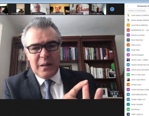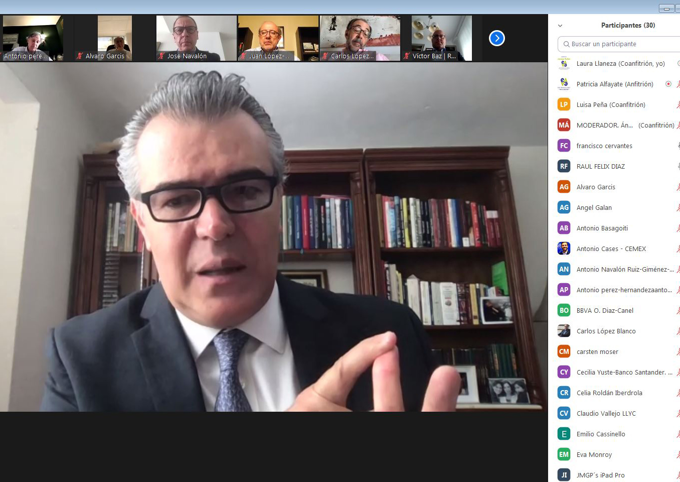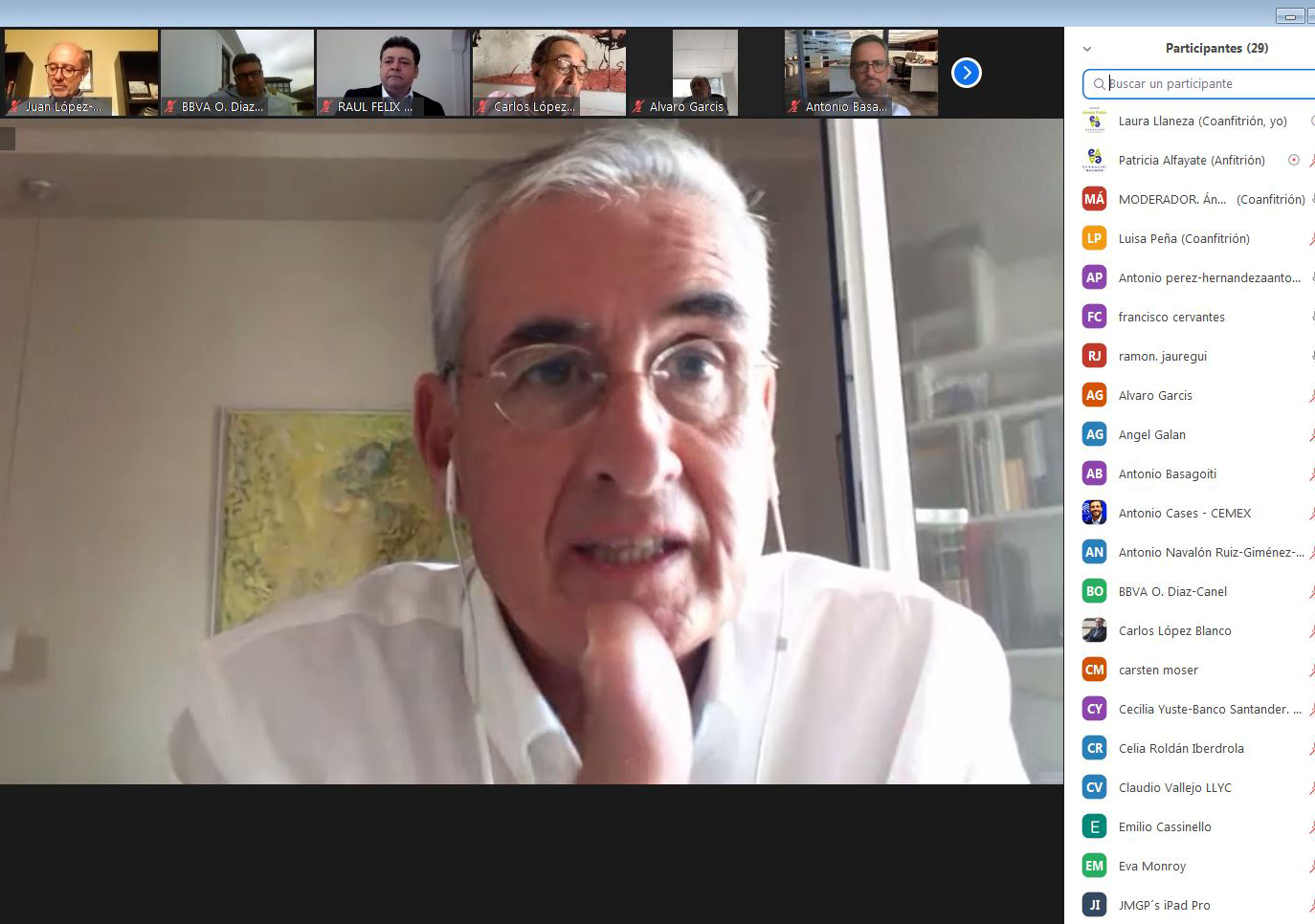 Finalmente, Raúl Félix Díaz pregunta que ya que en el acuerdo global modernizado se abre la posibilidad de participar en licitaciones públicas, cuáles cree que serán los sectores de oportunidad que abre este acuerdo? El Sr. Cervantes habla del sector energético -como el fotovoltaico- en el que se llegarán a acuerdos, pero sobre todo destaca el sector de la construcción que es el que más ramas industriales incluye más otras de servicios y por ello pueden reactivar más rápidamente la economía. Y el presidente está de acuerdo en la apuesta por la infraestructura. Cita también el sector automotriz por sus cadenas de valor. Se está trabajando con la Banca de desarrollo para buscar líneas de financiación (mediante la obtención de garantías), pero se hace desde el sector privados y enfocado a la media empresa ya que el gobierno está apoyando a la micro y pequeña industria. Las empresas grandes serán a través de la Banca comercial. Hay fondos interesados en invertir en México y se están fijando en el sector agroalimentario, sector que la pandemia ha demostrado que es fundamental.