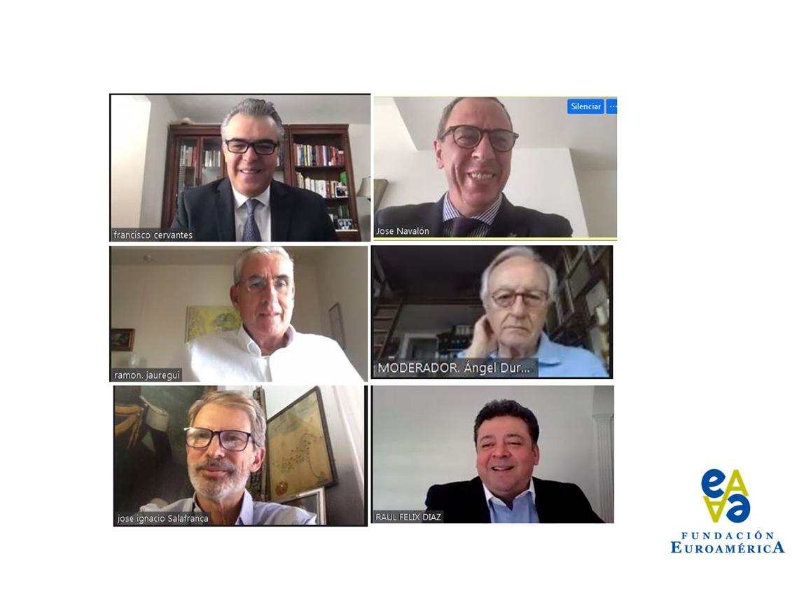 A partir de ese momento se dio paso al coloquio con los asistentes moderado por el vicepresidente A. Durández que comenzó con la intervención de vicepresidente Salafranca seguido de otros invitados tocándose temas como la seguridad, la exposición de la economía mexicana de los EEUU también sufriendo la crisis, el turismo en el que hay gran inversión española etc.