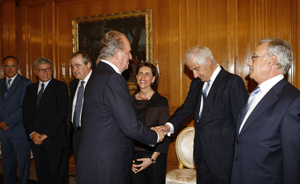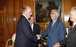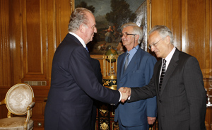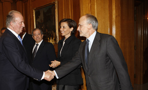 | S.M el Rey saluda a Ángel Durández, Vicepresidente de la Fundación Euroamérica. |
