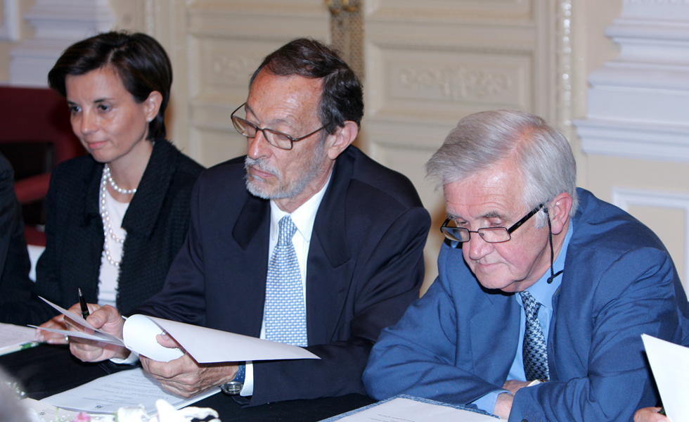 Olga Cuenca, Presidenta de Llorente&Cuenca, junto al Vicepresidente y ex Presidente de la fundación, Emilio Cassinello y Tristan Garel-Jones, respectivamente