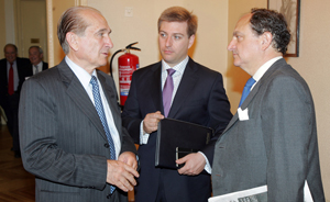 | Rafael Hoyuela, Jefe del departamento de Relaciones Institucionales del ICEX; Antonio Ortega, Abogado y Socio de Hammonds y Óscar Fanjul, Vicepresidente de Omega Capital |