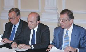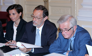 | Carsten Moser, Vicepresidente de la Fundación Euroamérica y Secretario General de la Fundación Bertelsmann, Miguel Á. Cortés, ex Secretario de Estado de Cooperación Internacional y Carlos Fernández-Lerga, Secretario General de la SGAE |