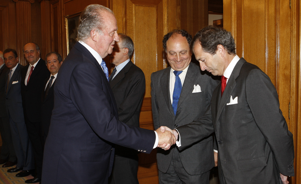 S.M. el Rey saluda a Borja Baselga, Director de Responsabilidad Corportativa y Relaciones Institucionales, Banco Santander.